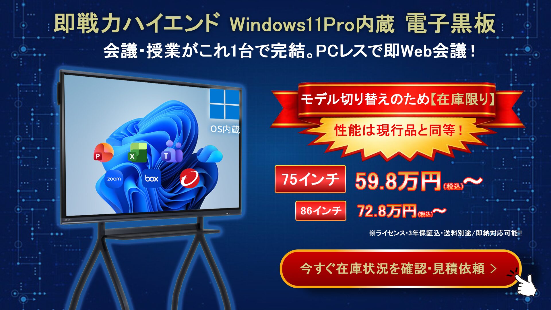 世界基準windows搭載の大画面 会議ツール デジタルホワイトボード「ANSHI TOUCH」を、